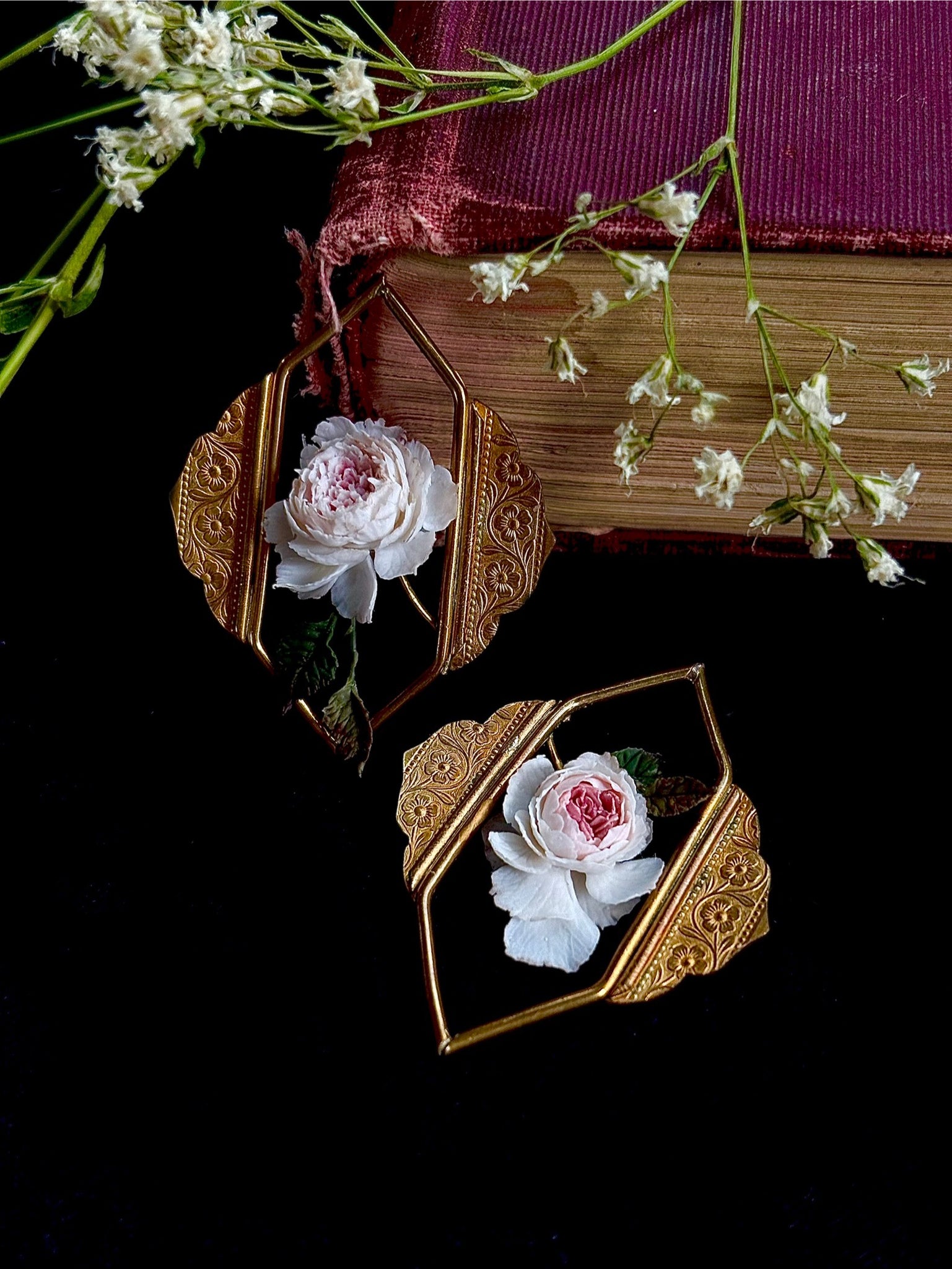 Rose Reverie Earrings are an ode to natures delicate beauty, handcrafted with care and intention in every detail.